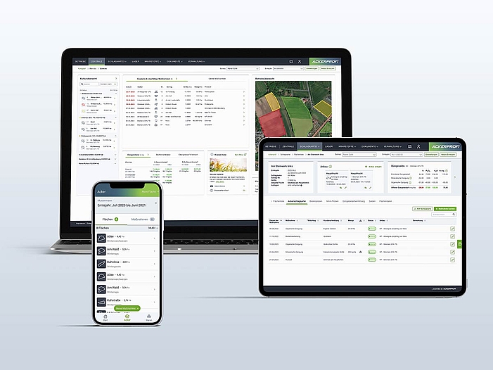 Mit der Software Ackerprofi verwalten Sie Ihre Schläge, disponieren Aufträge an Ihre Mitarbeiter sowie Partner und managen alle Nährstoffe im Betrieb. Nebenbei sorgt Ackerprofi für die lückenlose Dokumentation von Düngebedarf, Bedarfsdeckung und Stoffströmen – digital und ohne Papierflut!